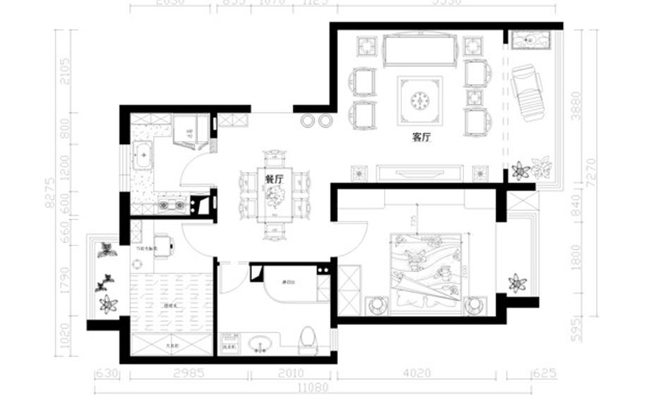 設計風格 中式 戶型案例 兩居 案例面積 92