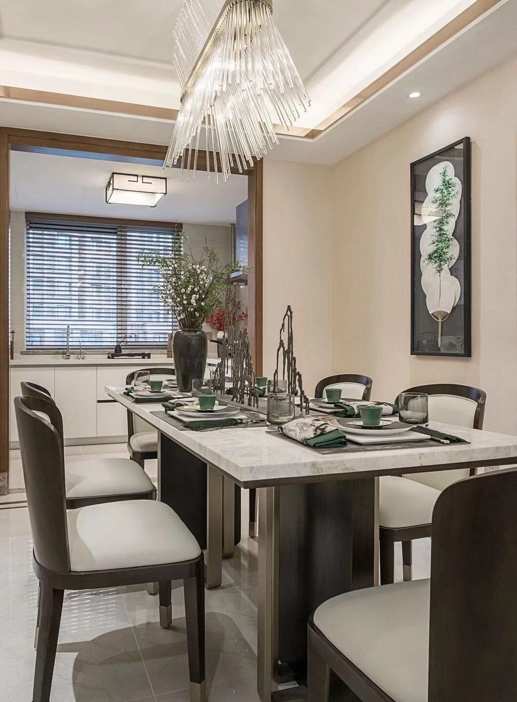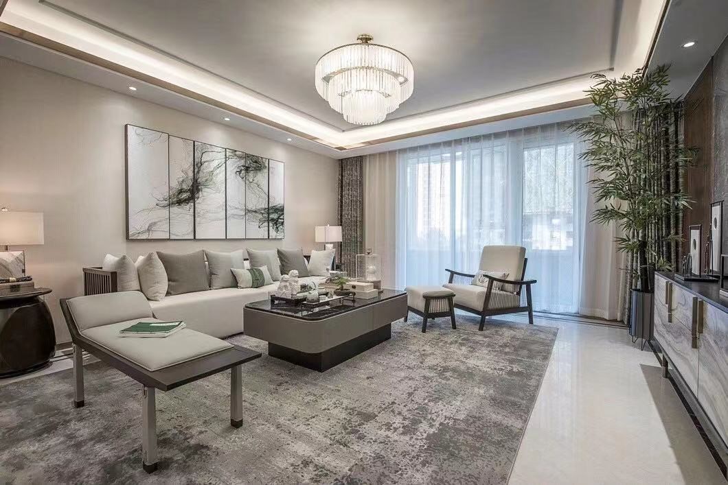 業主是一對60多歲的夫妻,男業主喜歡新中式,女業主卻喜歡簡單一些,所以最終在風格上選擇了綠色系的新中式。綠色系是回歸自然,不忘初心,是大自然的本色,藤蘿纏繞,花團錦簇,鳥鳴山幽,層林盡染,帶你回歸自然,暢快呼吸,享受詩意的棲居。