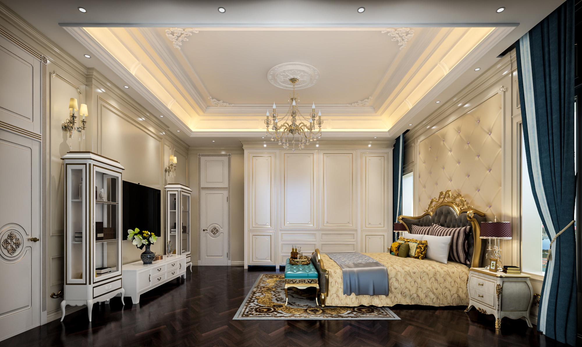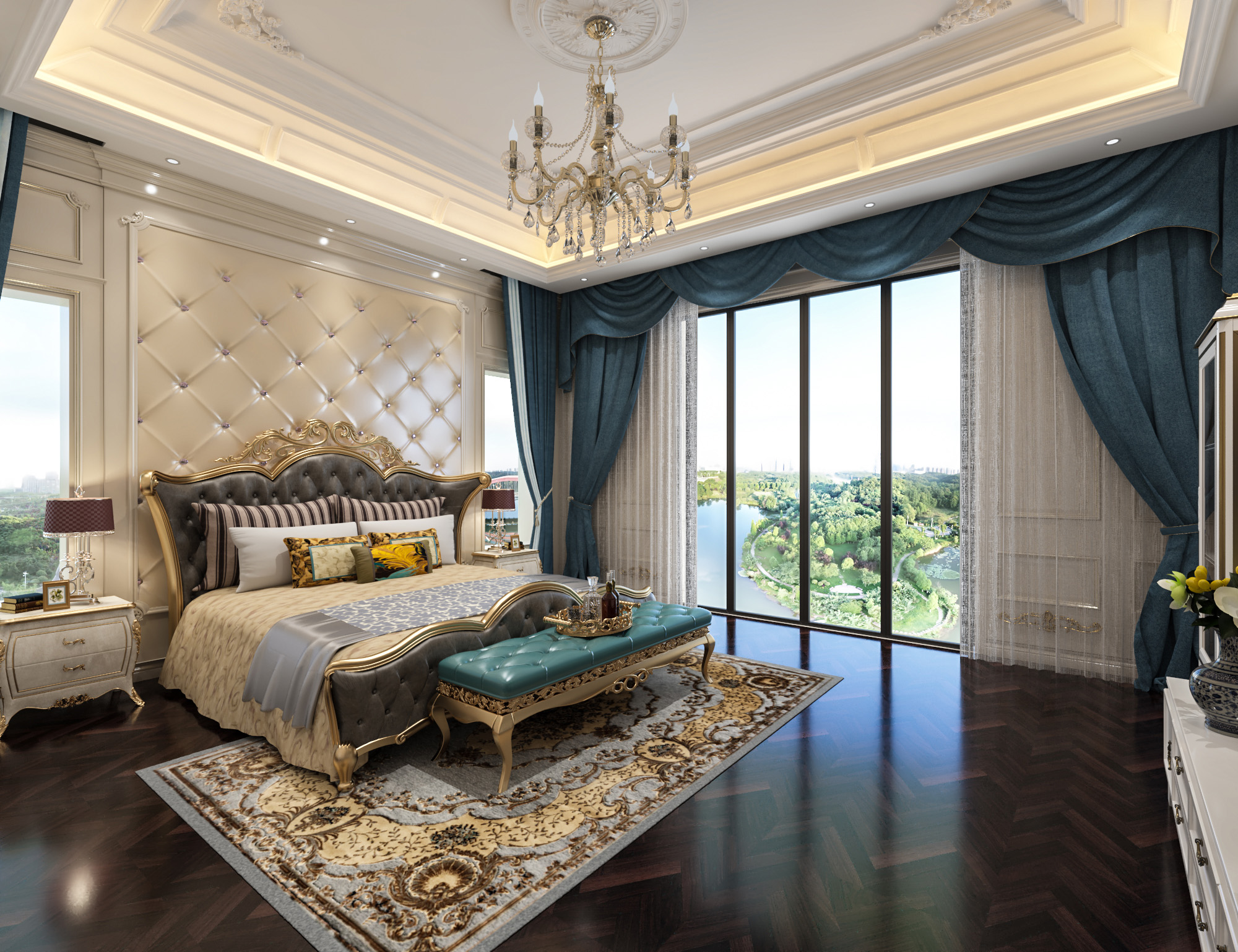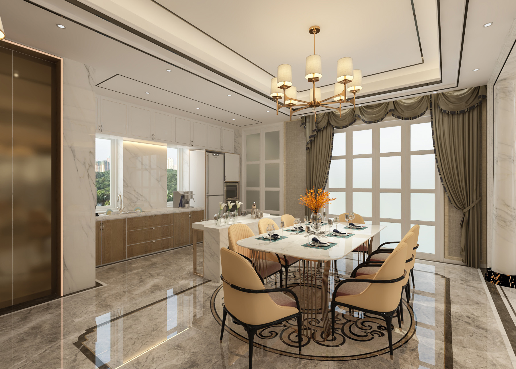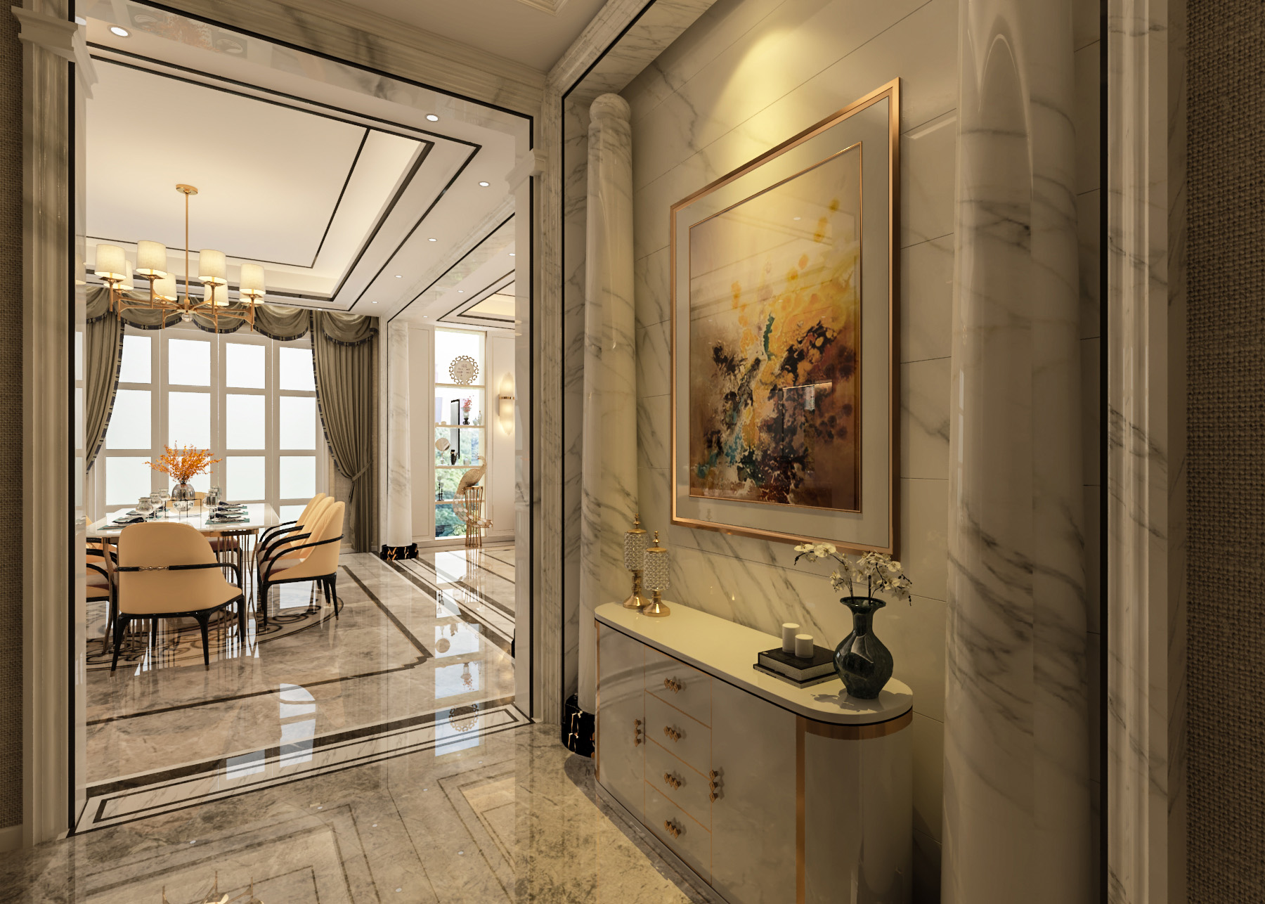 簡歐帶著一點輕奢的感覺,整個公共空間線條硬朗,材質感比較強,私密空間一溫馨舒適為主。