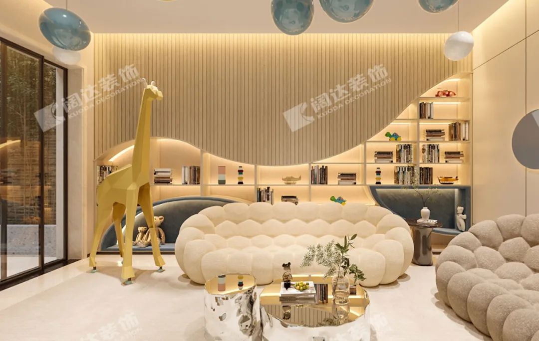 負一樓可以說是一個注重社交屬性打造的空間,既可以作為孩子的學習區(qū)域,又可以用來接待朋友。