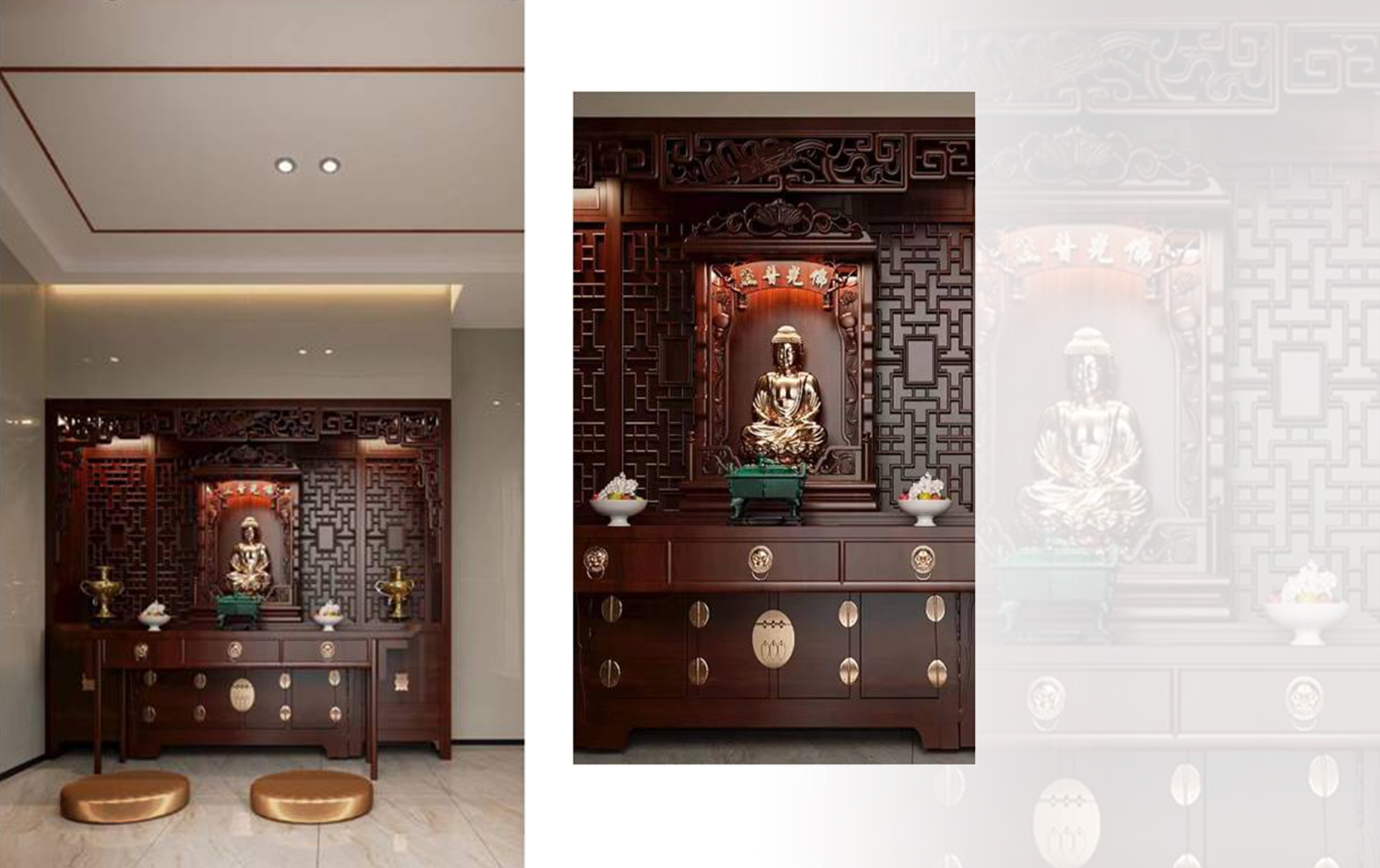 在都市中,佛堂,一方安頓心靈之所。一張供案,一方佛龕,一處禮佛與休閑結合的空間。去除憂煩,凈化身心,一日三省吾身。在這里,心有常清凈,無風自清涼。在這里,心有山海,靜而不爭。在這里,任世事變化,尋一處心安
