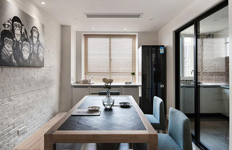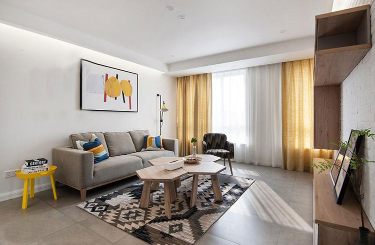本案戶型設計格局很合理,沒有大的變動,通過造型吊頂和壁紙的相呼應,整體風格統一化,使用了宜家風格,電視背景墻以白色石材為主線貫穿整體,使空間時尚大方。