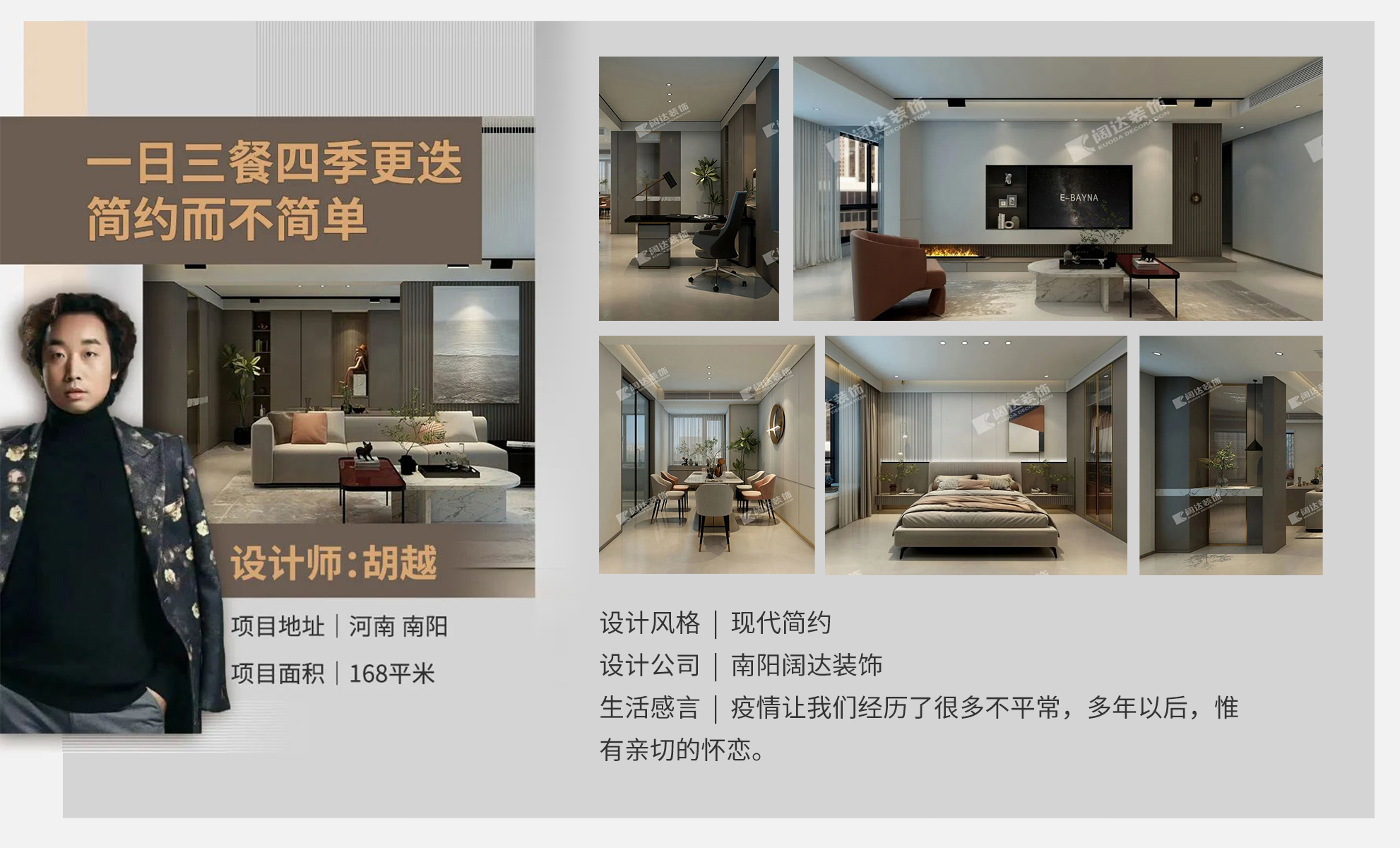 本案用簡潔的木制格柵材質做主背景,流露出生活的溫度,傳遞著居住者對美好生活的向往。簡約格局呈現出現代居家生活的精致、舒適與自由。